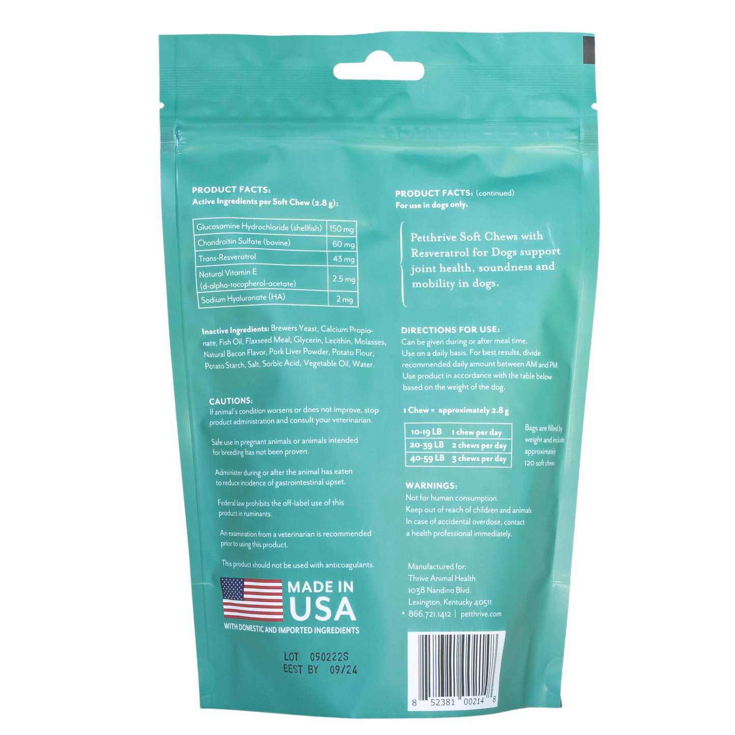 Advanced joint support for dogs in a conveniently administered hypoallergenic soft chew. Petthrive® Soft Chews deliver a proprietary blend of active ingredients that have been scientifically demonstrated to: